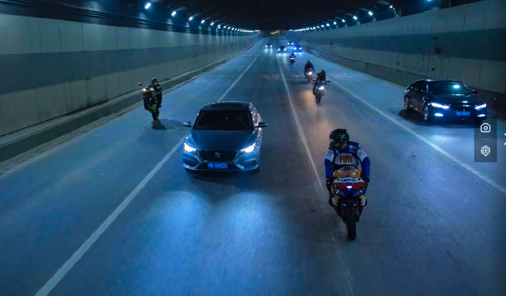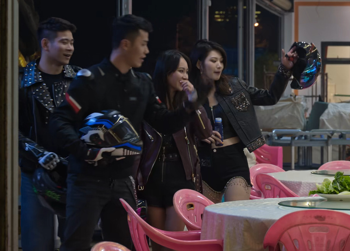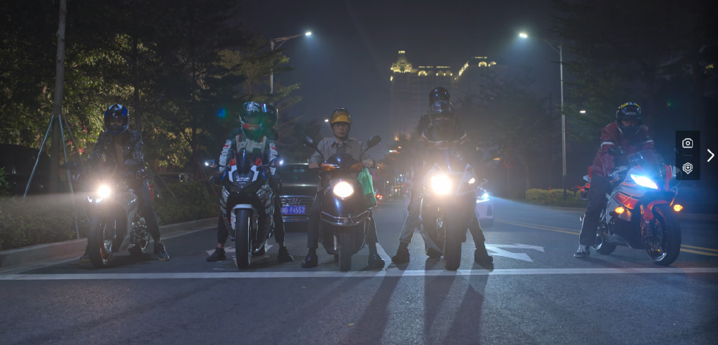 在电视剧的中段,时间轴来到2021年,红绿灯的戏,强哥与一群机车青年在等红绿灯的戏,演得挺有意思哈。驾驶员们都穿上了骑行服,头盔护具也是有的,无论排量大小,都乖乖地等红绿灯!
