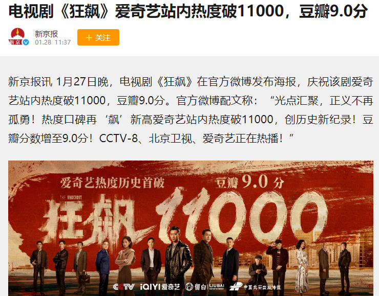 最近网络电视剧《狂飙》登上热搜,豆瓣评分高开9.0分。定档在新年播出,戏里演员演技十足,戏外观众聊得热火朝天,不仅宣传了正能量,还赢足了流量。截止发稿,这部《狂飙》依然一路狂飙,好评如潮。
