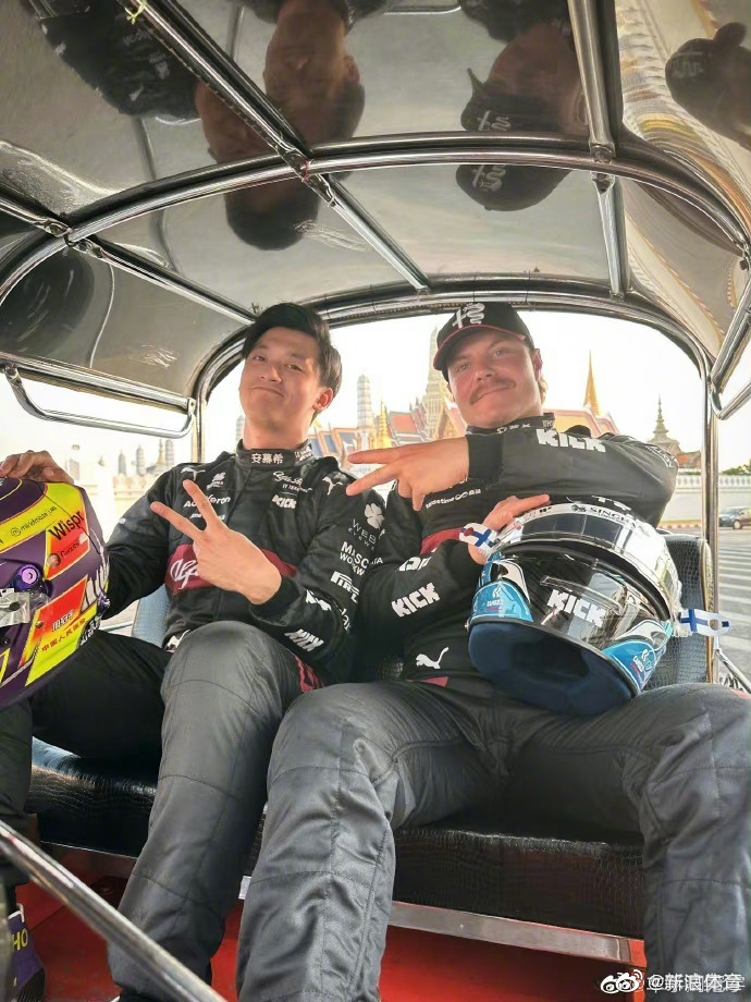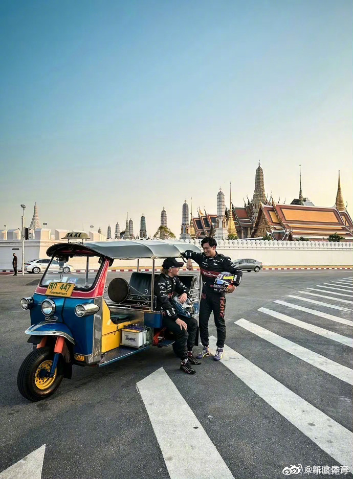 #周冠宇体验泰式速度与激情# @车手周冠宇 晒出乘坐泰国三轮摩托车的照片,体验了一把泰式速度与激情。