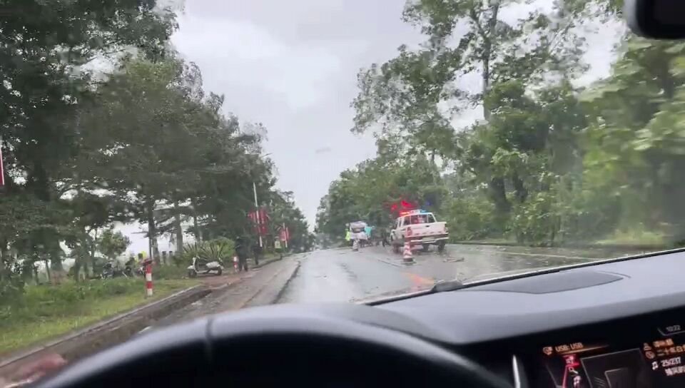 据现场目击者称,事发时,一名男性驾驶三轮摩托车载着一名女子,突然路边树木被风吹倒砸到该车辆,被砸中后该车辆驾驶员已无动静。